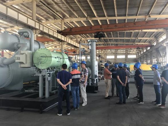 汇报会议结束后,参会领导来到工厂车间,对机组设备进行了检验,包括机组的出厂撬块、安装、工作界限等内容,并详细询问了机组润滑冷却系统,我们采用的是精滤过滤器一用一备的在线切换模式,对润滑油的启机温度、油箱温度等能进行在线监测,业主对机组安装过程中涉及到的资料(图纸、施工指引)也提出了要求,以保证机组安装的顺利进行。