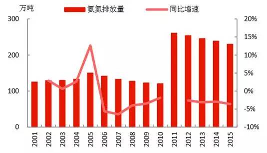 氨氮的排放量为230万吨,且每年以3%左右的速度下降;