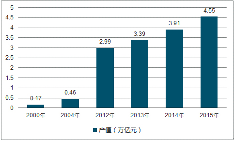 2000-2015 年中国环保行业产值情况